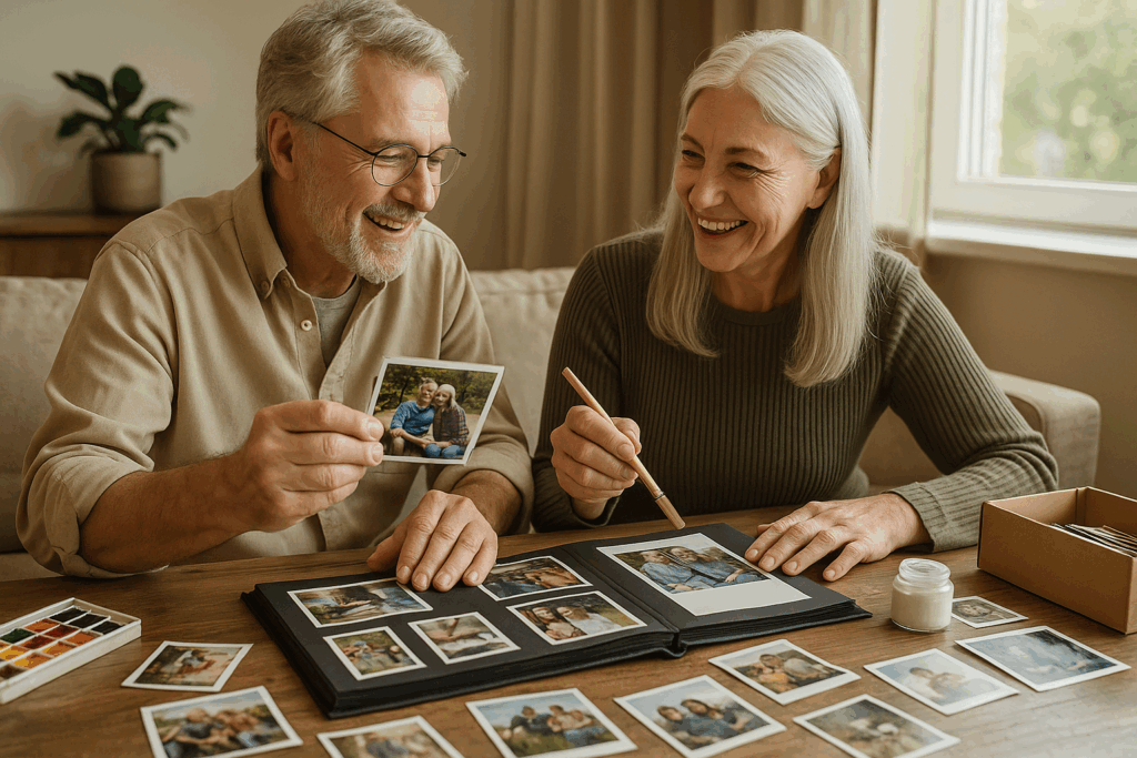 Decide on small projects, such as photo albums or crafts, and do them together. Painting, sorting, and displaying pictures with your spouse builds memories and creates joyful moments. When you collaborate, it adds teamwork and connection to both.